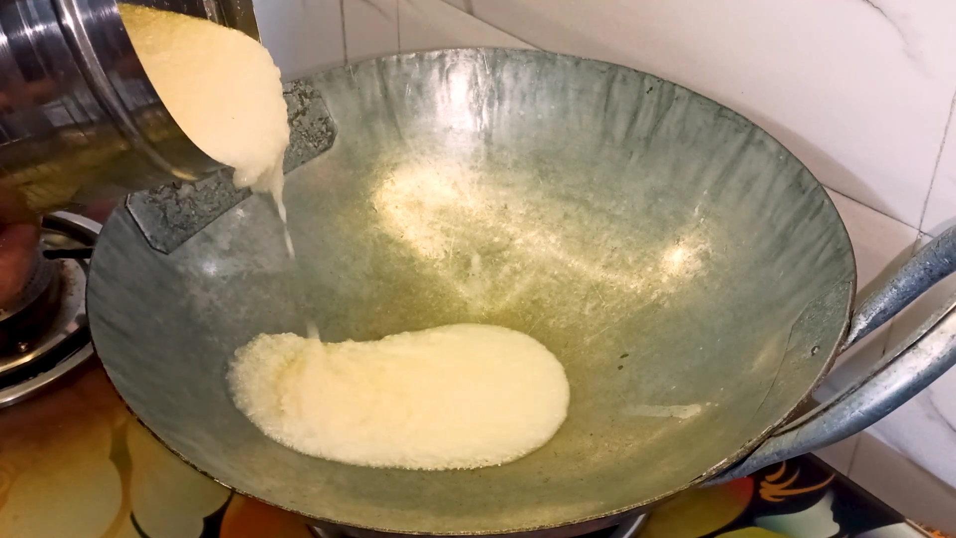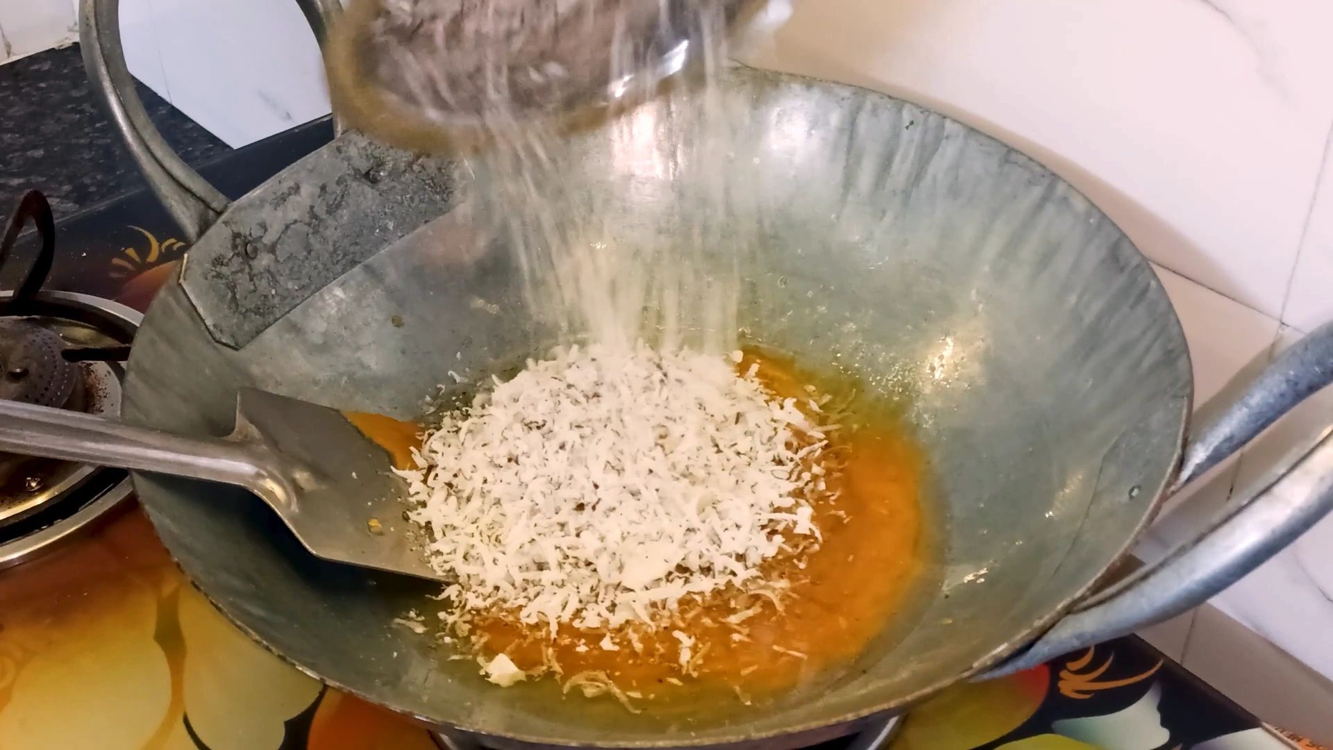 Add chopped jaggery on melted ghee, continuously stir and let jaggery melt
