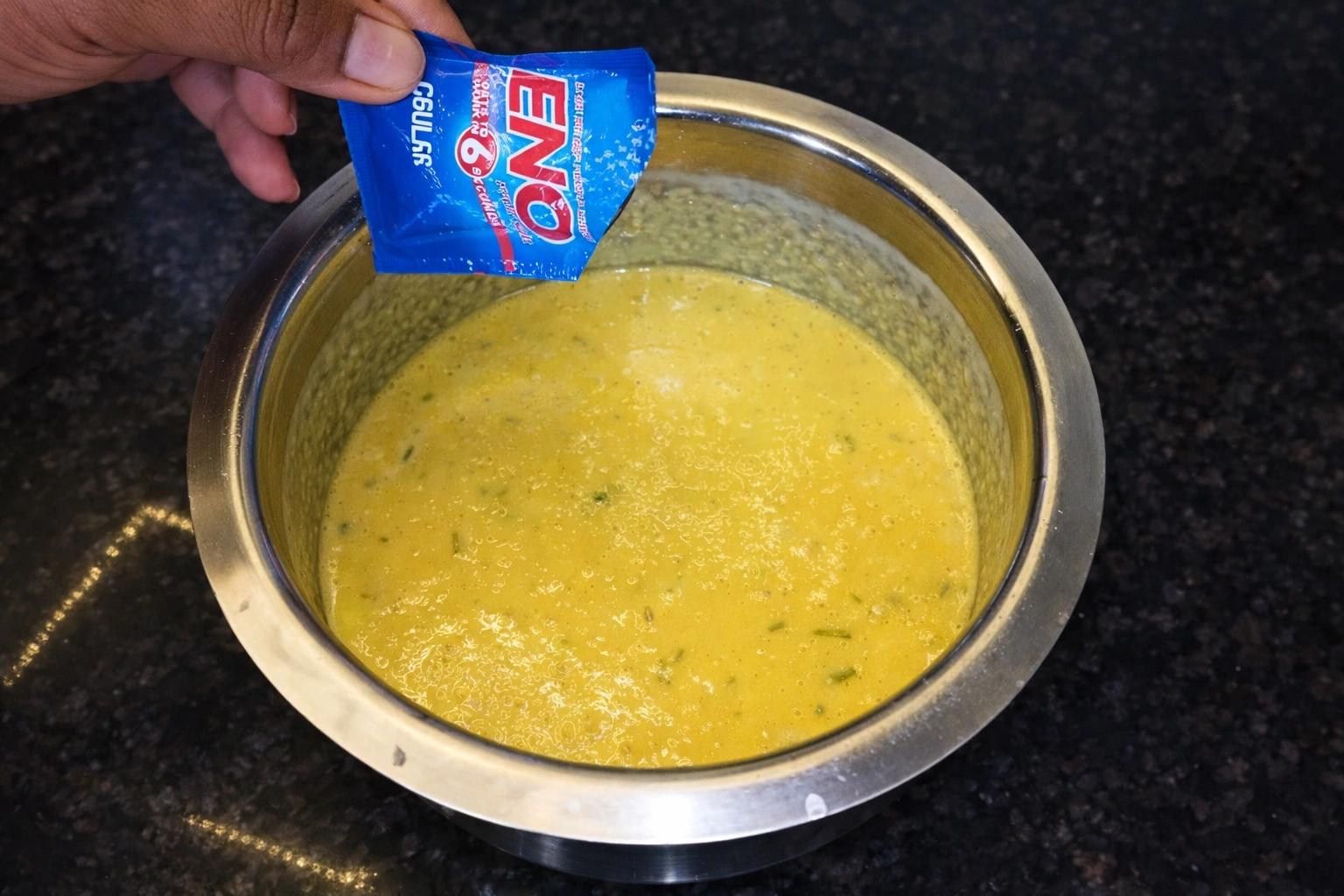 mix well and cover it and rest for 7 minutes again, after 7 minutes add unflavoured eno when you steam it