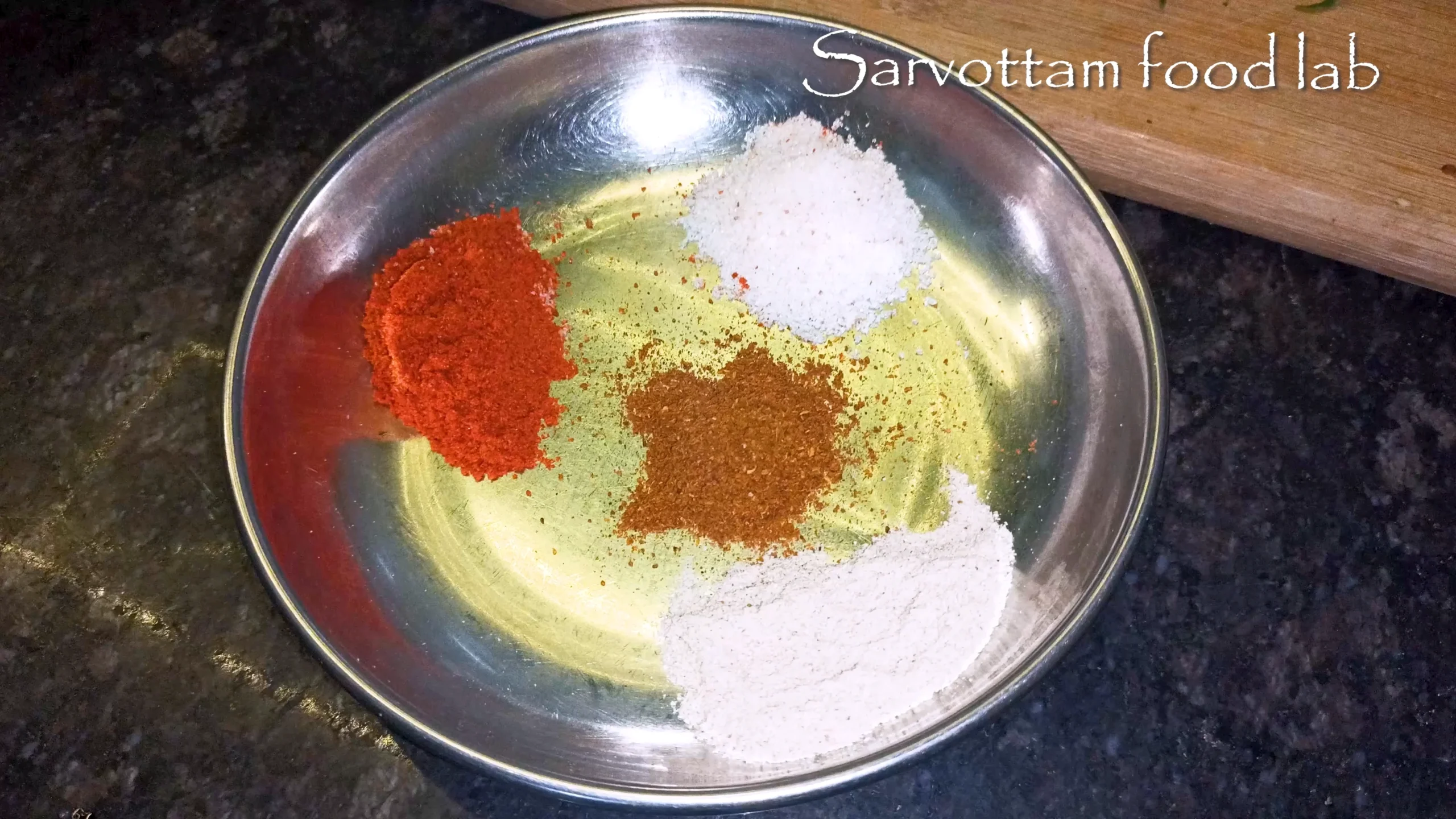 take plate and mix red chilli powdr, chat masala, black salt, salt mix well our dosa masala is ready