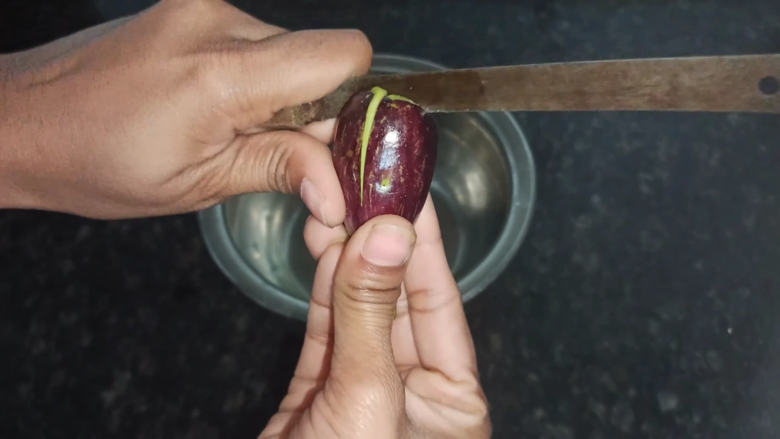 cut on brinjal add in water
