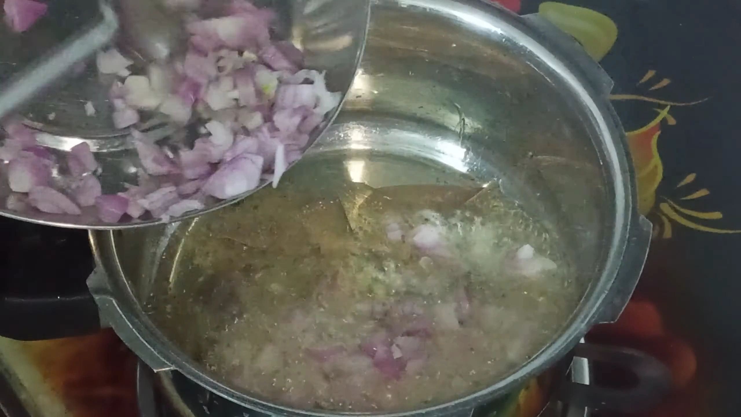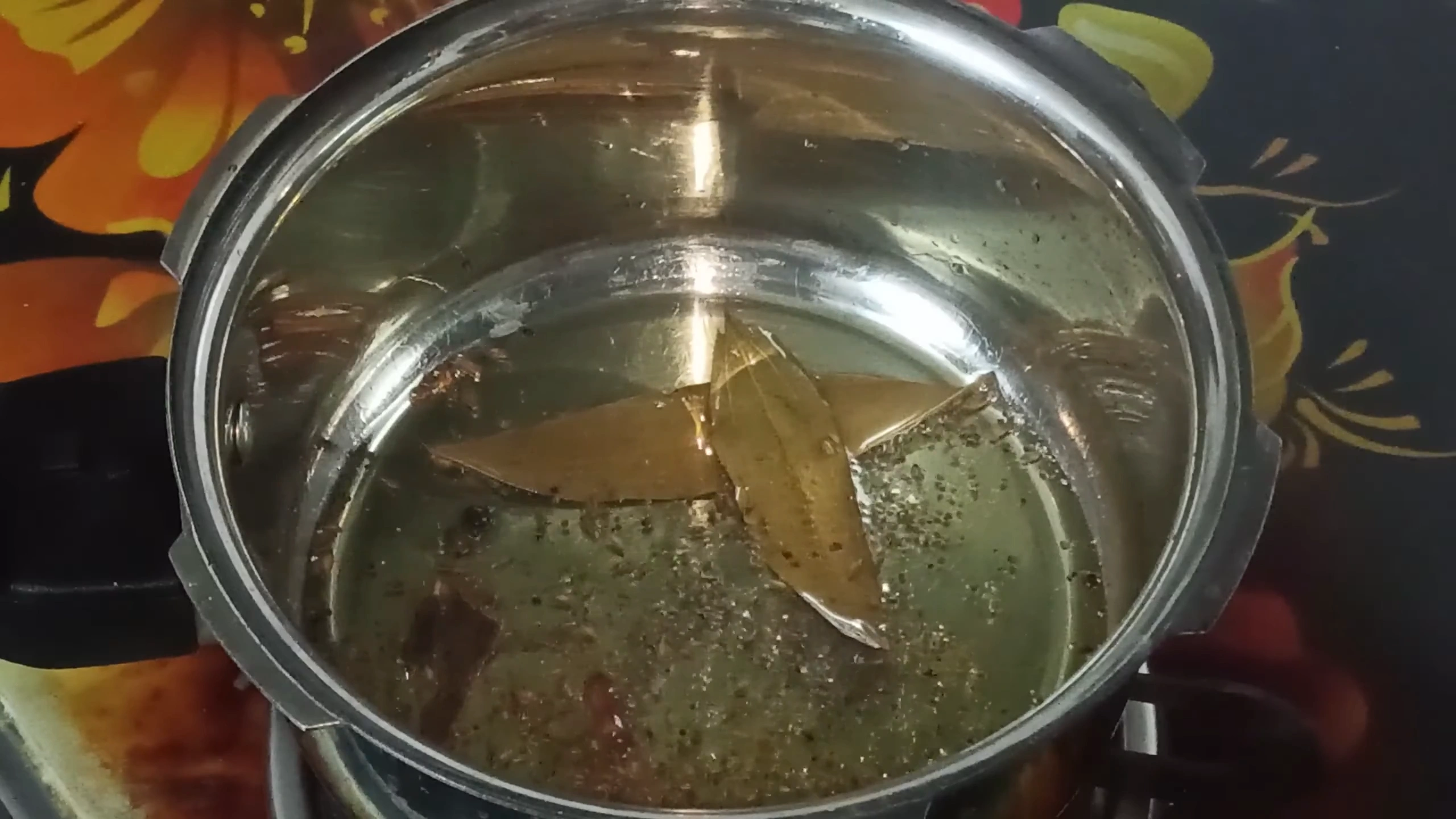 take a oil add bay leaf, clove, black paper, cinnamon, mustard seed, cumin add hing