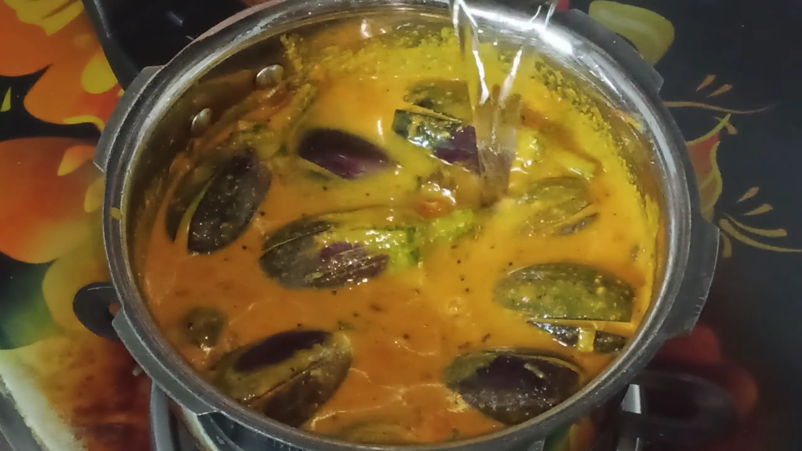 mix well add water and brinjal cover with lead give 4 wistle