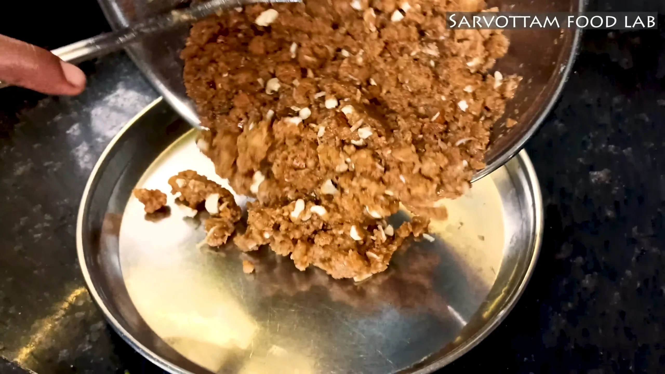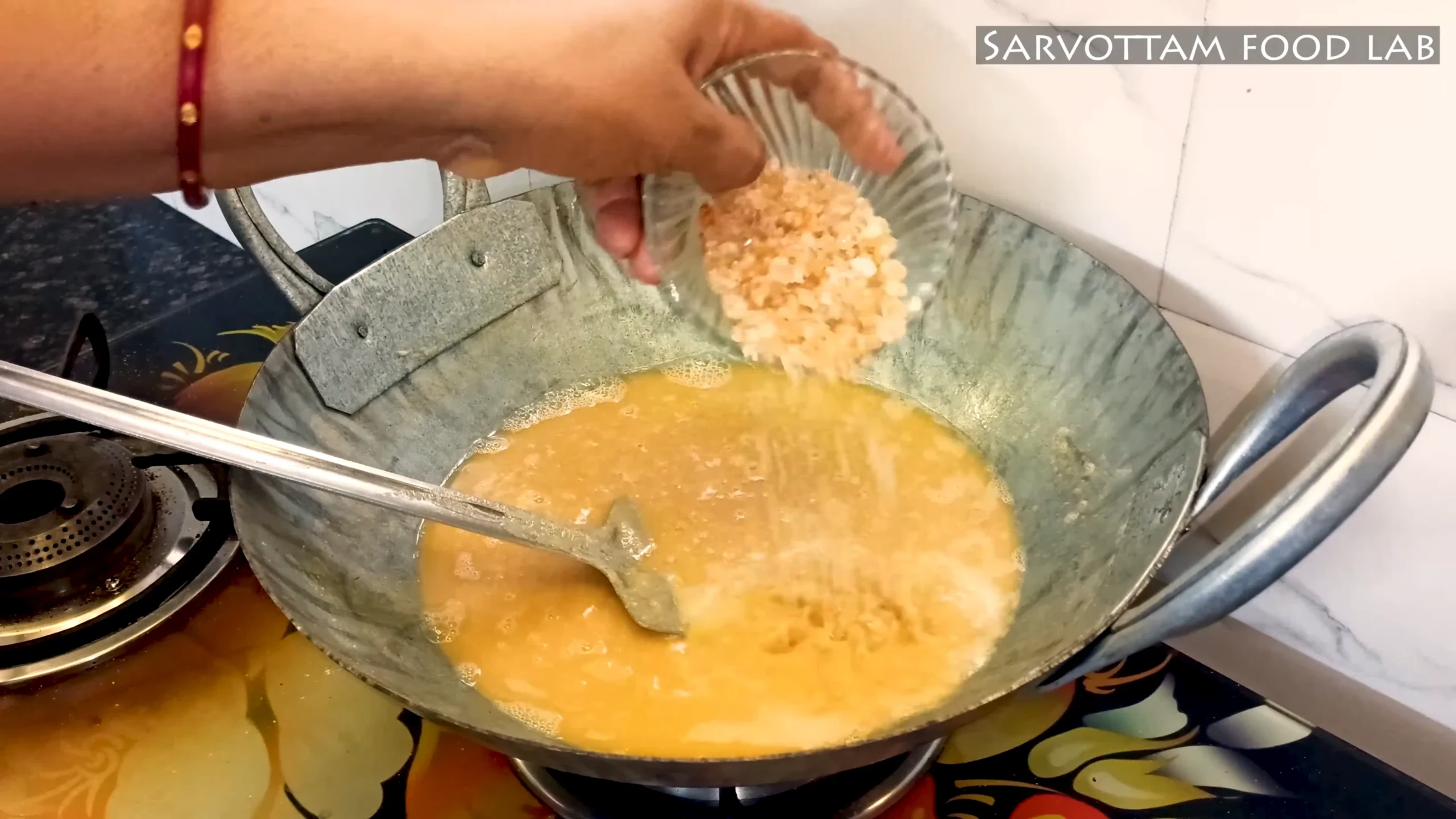 add 500gm jaggery off the gas flame and stir continously until jaggery is melt
